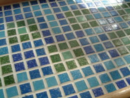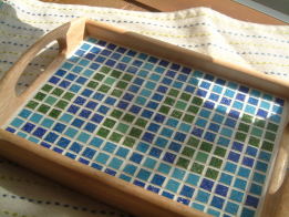 | Trey*トレー | 約1枚半のピッコロモザイクを使用 coler :AZUL + VERDE アートモザイクとはまたひと味違う 印象に出来上がりました |