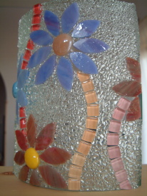 Lighting 新しくでた「グラスモザイク」を使ってガラス照明を作りました・ペレットに乱反射した光はとても幻想的です。 また、暗いところでの写真も近日中にお見せできるように頑張ります。