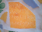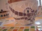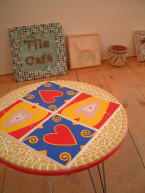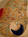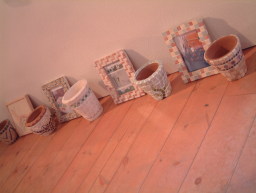 タイルには甥っ子の名前をフリーハンドで書いたものをつくりクラッシュしてモザイクに。